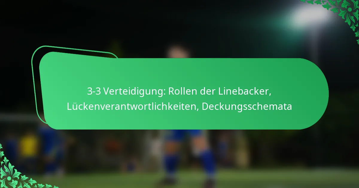 Die 3-3-Defense ist eine Football-Formation, die drei Defensive Linemen und drei Linebacker nutzt und darauf ausgelegt ist, Flexibilität gegen sowohl den Lauf als auch den Pass zu bieten. Dieses Schema betont die Kontrolle der Lücken und vielseitige Deckungsoptionen, was es effektiv für verschiedene offensive Strategien macht.