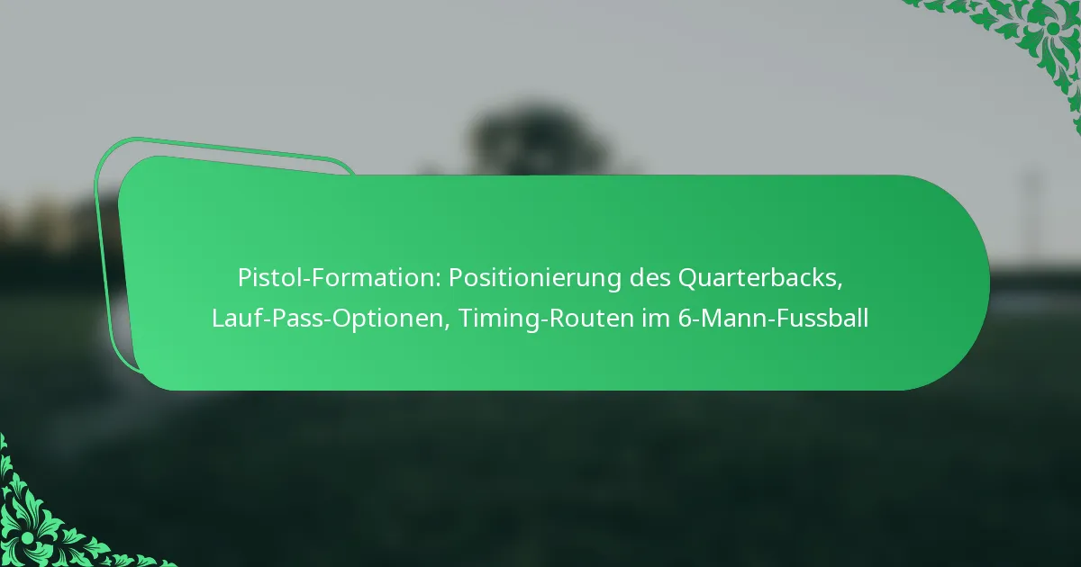 Die Pistol-Formation im 6-Mann-Football ist eine strategische Ausrichtung, bei der sich der Quarterback einige Yards hinter dem Center positioniert, was sowohl Lauf- als auch Passspielzüge ermöglicht. Dieses Setup erhöht die Vielseitigkeit der Offensive und ermöglicht schnelle Entscheidungen sowie dynamische Spielausführungen.
