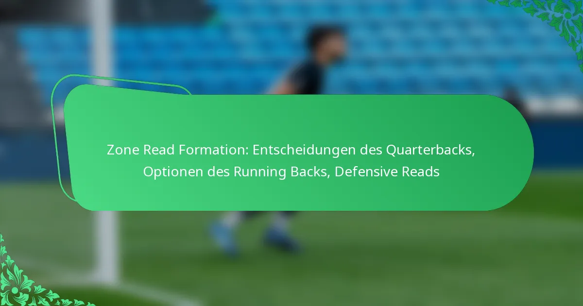 Die Zone-Read-Formation ist ein strategisches offensives Spiel im Football, das es dem Quarterback ermöglicht, eine schnelle Entscheidung basierend auf der defensiven Ausrichtung zu treffen. Es beinhaltet, dass der Quarterback einen bestimmten Verteidiger liest, um zu bestimmen, ob er den Ball an den Running Back abgeben oder ihn selbst behalten soll, wodurch Optionen für die Offensive basierend auf der Reaktion der Verteidigung entstehen.